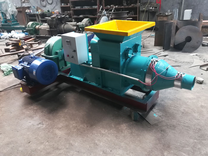 新型炮泥機是為鉆孔爆破工程使用的炮泥,而研制的專用生產設備,由電動機、齒輪箱、機體、破碎攪拌機構、成型脫模機構、機座和工作附件等部分組成。炮泥機的主要用途是,為鉆孔爆破工程,生產堵塞炮眼的炮泥,廣泛使用于采礦、鐵道、公路、隧道、橋梁、建筑、交通、水利工程等行業,以前爆破工程所使用的炮泥,均由工人在施工現場拌和粘土,用手工捏制而成,工作效率低,勞動強度大,工作環境差,炮泥成型很不規范,嚴重影響了爆破效果,華新冶金研發生產的炮泥機作為具有現場動力來源方便、便于遷移、輸出成品速度可調、很可靠等特點,解決了炮泥生產機械化和自動化問題,效果非常好,并且深受用戶們喜愛。